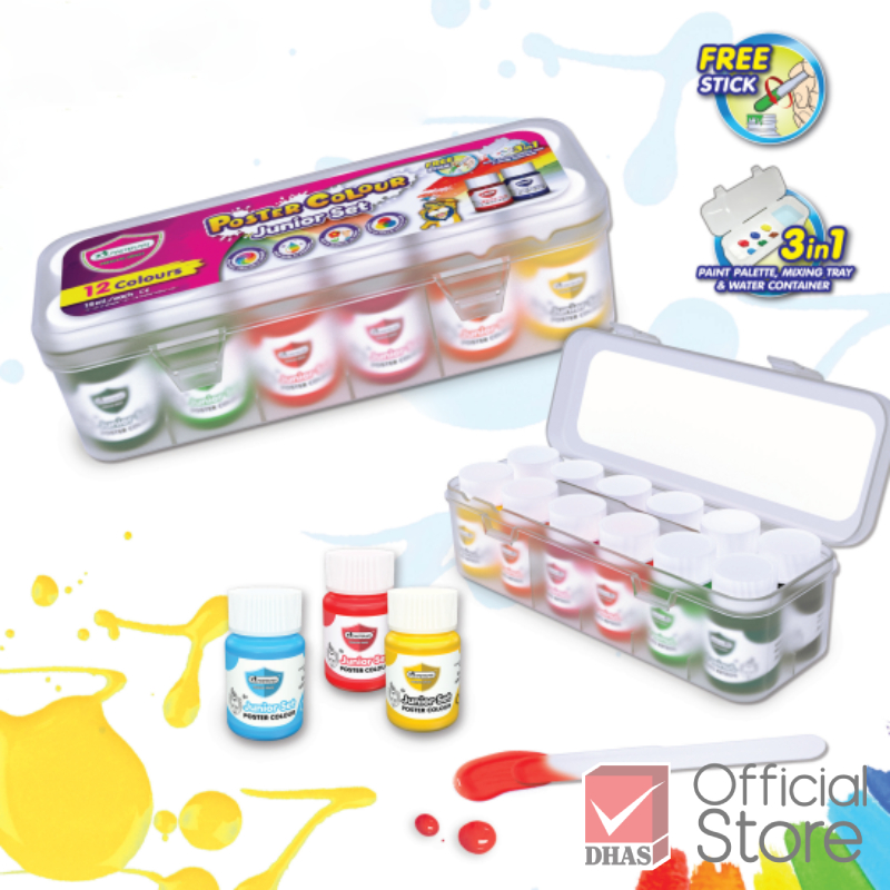 Master Art สีโปสเตอร์ ชุดสีโปสเตอร์ 12 สี สร้างสรรค์จินตนาการ ไร้ขีดจำกัด!ปลดปล่อยจินตนาการของคุณหนูๆ ด้วยสีโปสเตอร์ Master Art สีสันสดใส! ชุดสีโปสเตอร์ ที่มาพร้อมอุปกรณ์ครบครันในกล่องเดียว ให้เด็กๆ สนุกกับการวาดระบายสีได้อย่างเต็มที่✨จุดเด่นของสินค้า (Key Features)สีสันสดใส: 12 เฉดสีสวยงาม ให้เลือกสร้างสรรค์ผลงานได้หลากหลาย ได้แก่ แดง เหลือง น้ำเงิน เขียว เขียวอ่อน ส้ม ม่วง ฟ้า แดง ชมพู น้ำตาล ขาว และดำเนื้อสีคุณภาพดี: ผลิตจาก pigment สีคุณภาพสูง ระบายง่าย เนื้อสีสด ทึบแสง ให้ผลลัพธ์สีที่สวยงาม คมชัดปลอดภัย: ผ่านการรับรองมาตรฐานความปลอดภัยของยุโรป CE มั่นใจได้ว่าปลอดภัยต่อเด็กๆครบครันในกล่องเดียว: มาพร้อมกล่องสี 3 in 1 มีช่องสำหรับใส่สี ใส่น้ำ และผสมสีได้ สะดวก ใช้งานง่าย พกพาสะดวกแถมฟรี! ไม้คนสี: ช่วยให้การผสมสีเป็นเรื่องง่าย และสนุกยิ่งขึ้น✅ทำไมต้องเลือก Master Art สีโปสเตอร์: ผลิตจากวัสดุคุณภาพ สีสวย สดใส ติดทนปลอดภัย: ผ่านมาตรฐานความปลอดภัย มั่นใจได้ว่าปลอดภัยต่อเด็กๆคุ้มค่า: มาพร้อมอุปกรณ์ครบ พร้อมใช้งานได้ทันทีสะดวก: กล่องสี 3 in 1 ช่วยให้การจัดเก็บและพกพาสะดวก✅CE marking หรือ เครื่องหมาย CE เป็นเครื่องหมายรับรองที่แสดงว่าผลิตภัณฑ์เป็นไปตามข้อกำหนดด้านสุขภาพ ความปลอดภัย และการคุ้มครองสิ่งแวดล้อมตามกฎหมายและมาตรฐานที่เกี่ยวข้องของสหภาพยุโรป (EU)***********************.* สินค้าจำหน่ายคละ สี/ลาย ฯลฯ กรณีไม่มีตัวเลือกสินค้าทางร้านอยู่ระหว่างงดให้บริการเลือก สี/ลาย ฯลฯ ของสินค้าทุกกรณี.** สินค้าจำหน่ายคละ สี/ลาย ฯลฯ กรณีมีตัวเลือกสินค้าหากต้องการเลือก สี/ลาย ฯลฯ กรุณากดเลือกสินค้าในระหว่างขั้นตอนการสั่งซื้อ.*** กรุณาอ่านรายละเอียดสินค้าและสอบถามข้อสงสัยก่อนทำการสั่งซื้อสงวนสิทธิ์งดเปลี่ยนหรือคืนสินค้าที่เกิดจากความเข้าใจผิดของตัวลูกค้าเองทางบริษัทจะคืนเงินหรือเปลี่ยนสินค้าให้เฉพาะกรณีที่สินค้าไม่ตรงกับข้อมูลจำเพาะที่ตกลงกันไว้เท่านั้น#DHAS #สยามวาลา #เครื่องเขียน #stationery #Masterart #มาสเตอร์อาร์ต #สี #สีโปสเตอร์ #ระบายสี