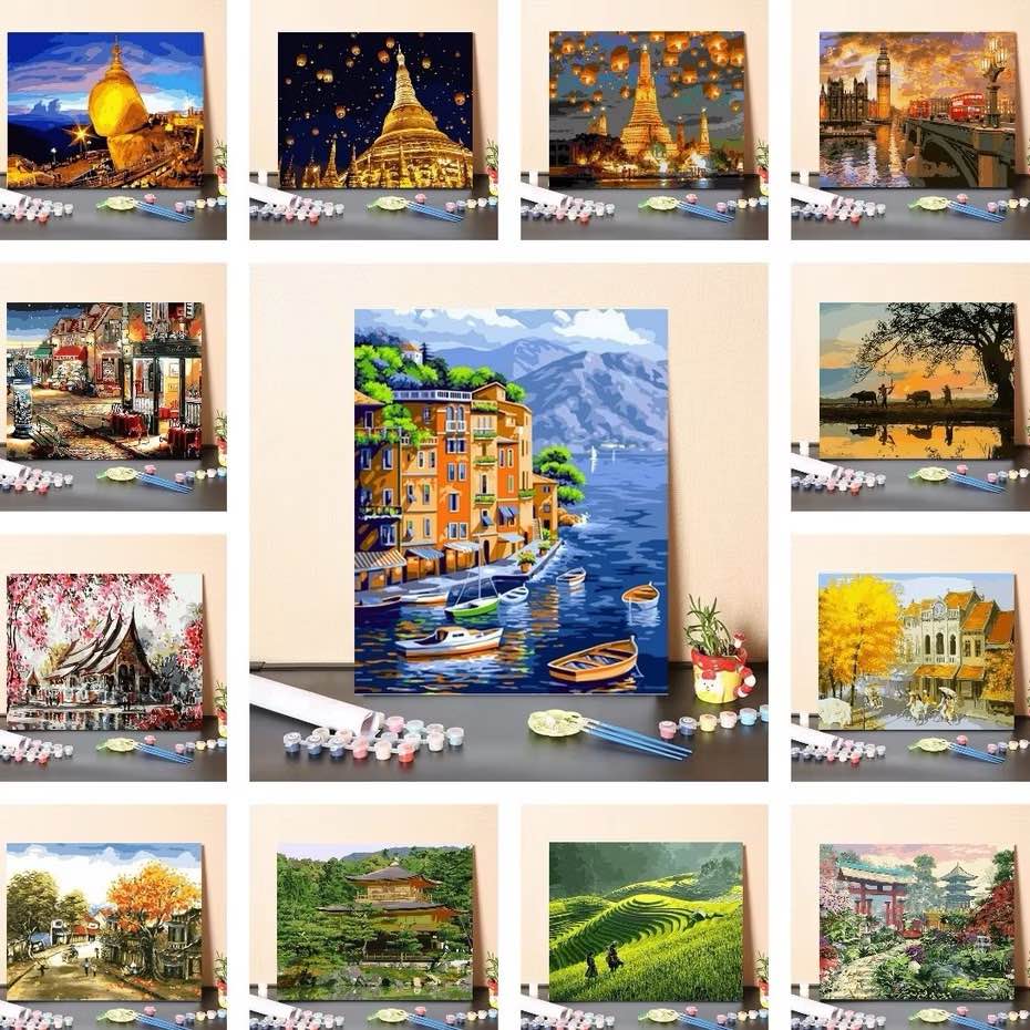 ภาพสีน้ำมัน ขึงเฟรมไม้ พร้อมอุปกรณ์ ขนาด 40×50cm งานศิลปะ DIY ของขวัญ ตกแต่งบ้าน ประเภทงานฝีมือ ภาพระบายสีตามตัวเลข