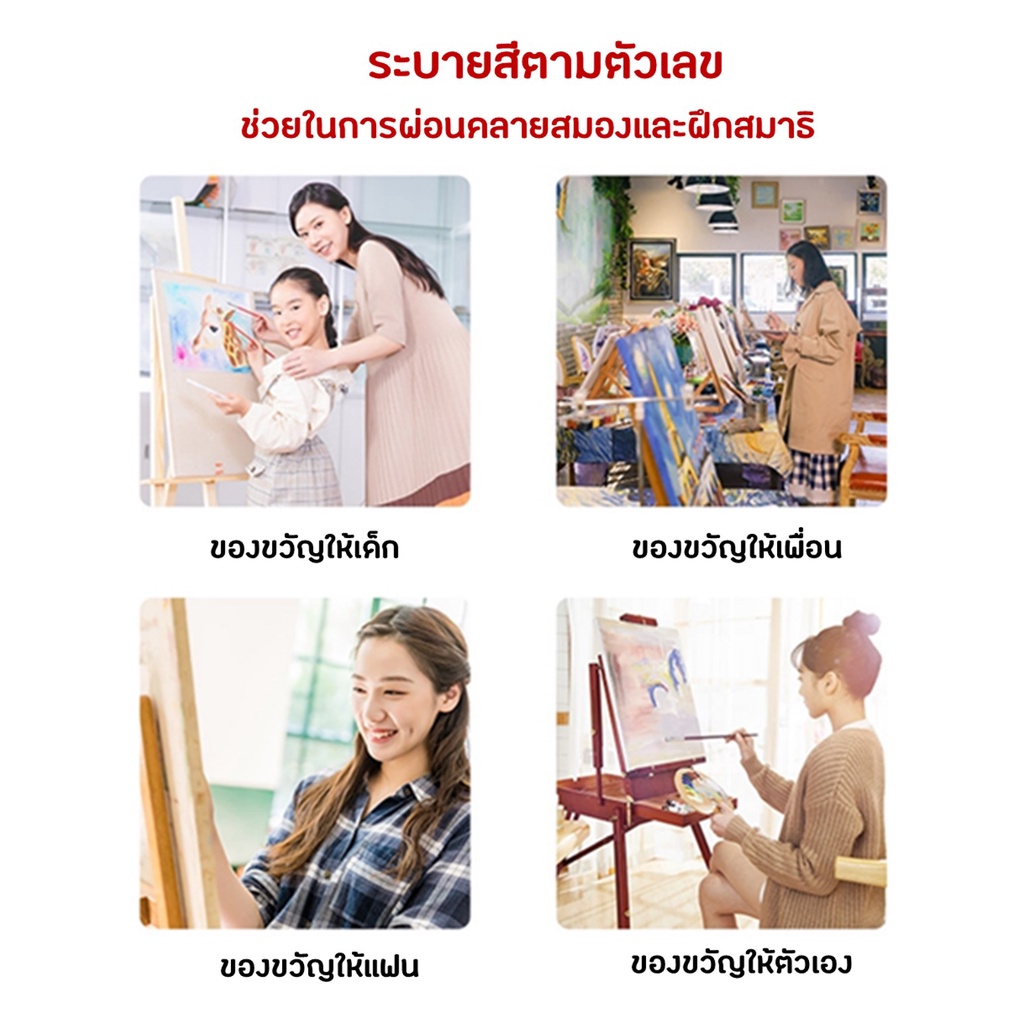 อย่ากลัวที่จะจับพู่กัน ชวน ‘ระบายสีตามตัวเลข’ อีกงานอดิเรกช่วงเวลาว่าง ที่ไม่ต้องเป็นศิลปินก็ทำได้สินค้ารวม:1. ผ้าใบแคนวาสขึงบนเฟรมไม้ ขนาด 30*30 cm2. สีอะคริลิค กันน้ำ พร้อมระบาย3. พู่กันระบาย 3 ขนาด4. ห่วงสำหรับแขวนภาพ พร้อมสกรู 2 ชุด
