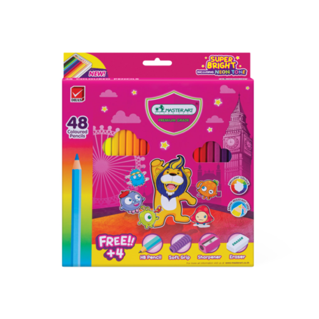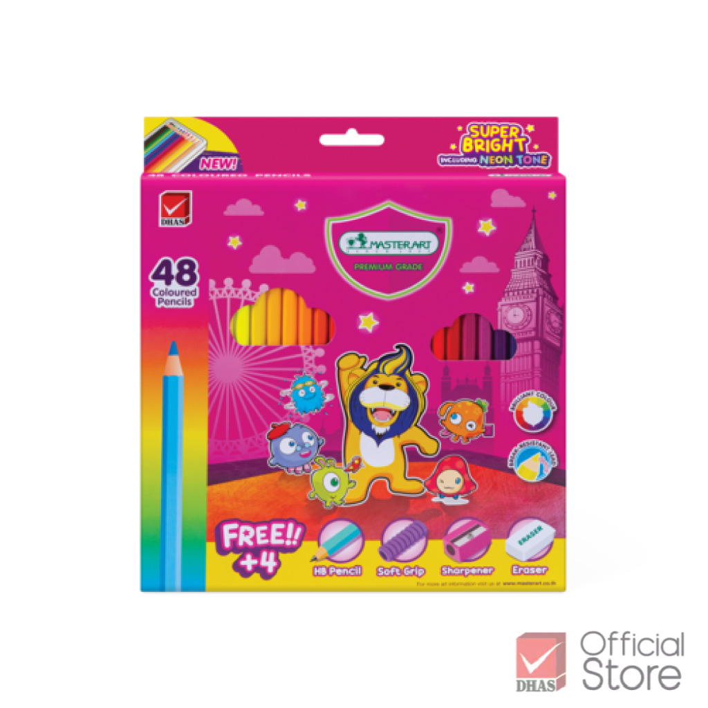 Master Art สีไม้ ดินสอสีไม้ แท่งยาว 48 สี รุ่นซุปเปอร์ไบรท์ จำนวน 1 กล่องแบรนด์Master ArtSKU4071011283_TH-15877057191คุณสมบัติหมึกsuper brightประเภทของหมึกอุปกรณ์ที่มีเม็ดสี