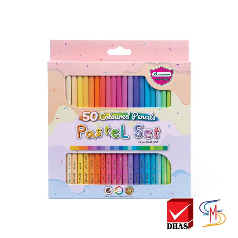 Master Art สีไม้ ดินสอสีไม้ แท่งยาว 50 สีพาสเทล (1 กล่อง)แบรนด์Master ArtSKU4707572799_TH-19408235122คุณสมบัติหมึกไร้กรดรุ่นสีพาสเทลประเภทของหมึกสีไม้