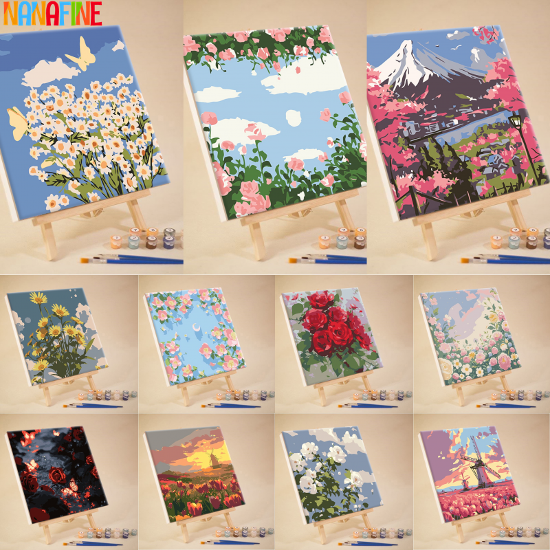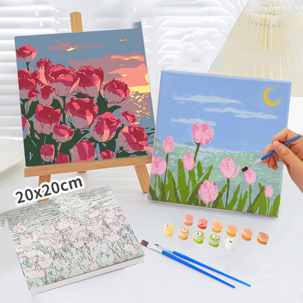 ชุดภาพวาดสีน้ำมันระบายสีตามตัวเลข ขนาด 20×20 ซม. จาก Nanafine เหมาะสำหรับทั้งเด็กและผู้ใหญ่ที่ต้องการสนุกกับงานศิลปะ แม้ไม่มีพื้นฐานการวาดภาพ ก็สามารถสร้างผลงานที่สวยงามได้