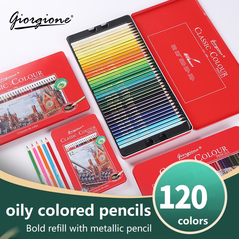 Brand: GiorgioneProduct name: oily colored pencilsColor: 12/24/36/48/72/120 colors optionalPacking: Painted tin boxModel: G-MT-12/24/36/48/72/120Applicable: painting, creation, design, etc.Features: iron box packaging, durable and not easy to break. The color pencil is bright and soft, easy to color. Using SV bonding technology, breaking resistance is added.