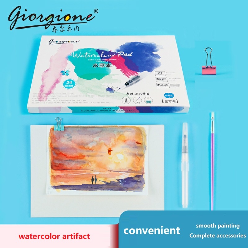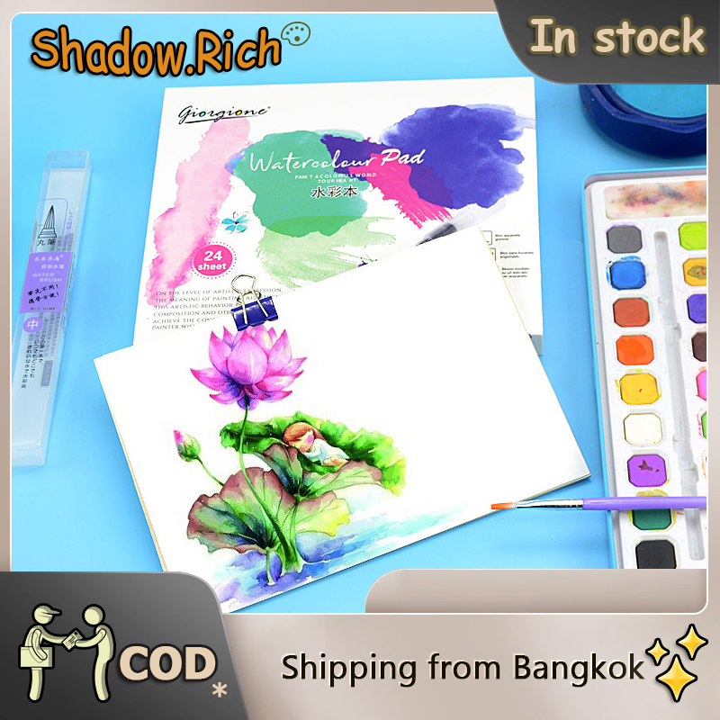✅ Products in Thailand✅ Stock up and ship within 1-3 days!✅ Shipping time 2-5 days, depending on your location!✅ Wholesale welcome!✅ Follow us for more deals!Packaging: boutique paper card packagingProduct name: 24 watercolor paper setPaper size: A5(18.5CM*13CM)Quantity: 24 sheetsApplicable: watercolor / sketchColor: green/purple/pink/blue (random color)Accessories: 230G watercolor paper / fountain pen / watercolor brush / convenient tail clip / sketchpad