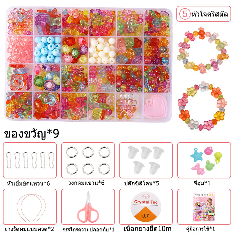 Material:good quality Acrylic, non-toxic and tasteless, very safe for kids.Toy size:1 boxfree toolkit+tutorialready stocks at bangkokThe jewelry making accessories include-Crystal line(stretchy elastic), Safety scissirs for children,A bag of diy accessories, a hair hoop, an instruction of different production picturesHigh quality environmental acrylic beads can be used in a variety of activities such as DIY,parties etc.Use these beads to making jewelry, bracelet,necklace or hair hoop etc.Great for kids adults toddlers children creative ability,imagination,logical thinking,hand-eye coordination,beginning ability.Best gift for kids birthday, including small accessoriespartsFor age 5 and up, Easy to create and design, make happy to the child and the parent’s(do not leave children alone to finish to avoid children eat the beads )