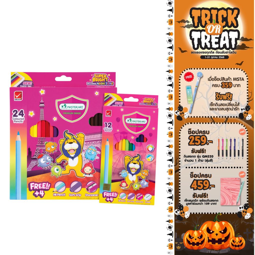 [ใหม่!] สีไม้ แท่งยาว 12 สี / 24 สี มาสเตอร์อาร์ต ซุปเปอร์ไบร์ทมาสเตอร์อาร์ตดินสอสี รุ่นซุปเปอร์ไบรท์● ระบายนุ่มลื่น เฉดสี Super Bright สีสดขึ้น● มีสี Neon ภายในกล่อง● ไส้แข็งแรง ขนาด 2.9 มม.● ด้ามทรงหกเหลี่ยม จับถนัดมือ● ผลิตจากไม้คุณภาพดี ลดปัญหาการโก่งงอ เหลาง่าย ไม่ทำให้ไส้หักขณะเหลา● บรรจุในถาดพลาสติกแข็งแรง● ผ่านการรับรองมาตรฐานคุณภาพและความปลอดภัย EN71/9 จากยุโรปหรือ EN71 & Phthalate Safety Standard และ ASTM D-4236 จากสหรัฐอเมริกา● แถมฟรี! +4 กบเหลา ยางลบ ดินสอ และปลอกจับดินสอ● รุ่นหัวเดียว แท่งยาว 12 สี / 24 สี● จำนวน 1 กล่อง———————————-‍ เงื่อนไขการรับประกัน เปลี่ยน/คืนสินค้า (รับเปลี่ยน/คืน ภายใน 15 วัน นับจากวันที่ซื้อ)- สินค้าที่จะทำการเปลี่ยนคืน ต้องมีสภาพสมบูรณ์แบบเดียวกันกับที่บริษัทนำส่งให้- กรณีสินค้าชำรุดเสียหายจากการขนส่ง/หมดอายุ/ชำรุดจากโรงงาน จัดส่งสินค้าเปลี่ยนให้ภายใน 5-7 วัน ✅ โดยบริษัทจะเป็นผู้รับผิดชอบค่าใช้จ่าย- กรณีอื่นนอกเหนือจากที่กล่าวมาข้างต้น ขอสงวนสิทธิ์ให้ลูกค้าเป็นผู้รับผิดชอบค่าจัดส่งที่เกิดขึ้น❗️ สินค้าร่วมโปรโมชั่น Clearance หรือสินค้าที่มีการแจ้งตั้งแต่ต้นว่ามีตำหนิ ไม่รับเปลี่ยนคืนทุกกรณี ❗️สินค้าคละสี คละลาย ลูกค้าไม่สามารถเลือกเองได้นะคะ