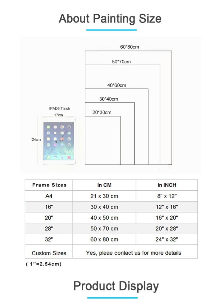 สิ่งที่สำคัญสำหรับลูกค้าของเรา: เราสนับสนุนรูปภาพและขนาดใด ๆ ที่สามารถปรับแต่งเราจะให้ส่วนลดพิเศษผลิตภัณฑ์คุณภาพสูงบรรจุภัณฑ์ที่แข็งแกร่งการจัดส่งที่รวดเร็วและบริการที่น่าพอใจหากคุณต้องการโปรดติดต่อเรา 1. มีเส้นขอบเพิ่มเติมรอบ ๆ ผืนผ้าใบแต่ละใบ เราใช้การตัดด้วยมือข้อผิดพลาดภายใน 5 มม. 2. ผลิตภัณฑ์ที่คุณได้รับเป็นภาพวาดสีน้ำมันที่บรรจุอย่างดี 3. สีที่แท้จริงอาจแตกต่างจากภาพเล็กน้อยเนื่องจากเอฟเฟกต์แสง 4. ภาพวาดไม่ได้วาดด้วยมือ แต่พิมพ์ด้วยเครื่อง 5. หากคุณต้องการขนาดที่กำหนดเองโปรดติดต่อเรา
