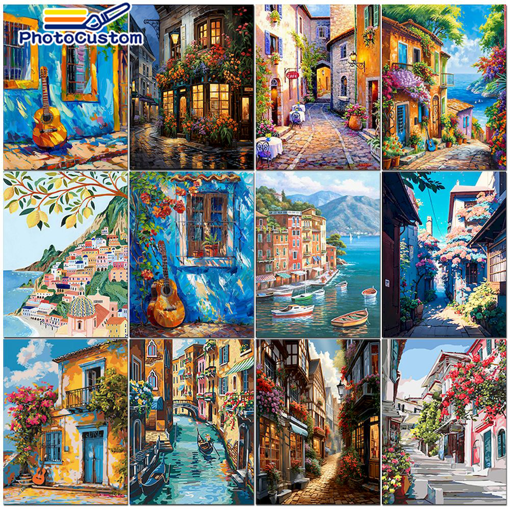 PhotoCustom สีอะคริลิค DIY ตัวเลขจิตรกรรมชุดภาพวาดสีน้ํามันโดยตัวเลขทิวทัศน์บนผ้าใบ HandPainted ชุดระบายสีโดยหมายเลขแบรนด์PhotoCustomSKU5557816907_TH-23645433569วัสดุผ้าลินินสไตล์คลาสสิกประเภทการรับประกันสินค้าไม่มีการประกัน