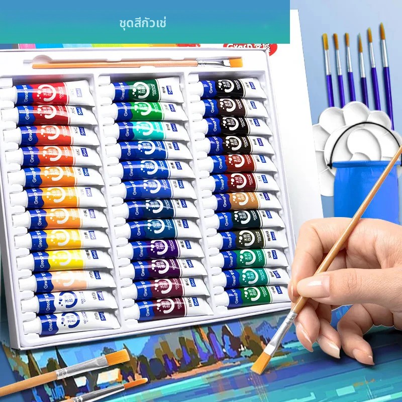 gouache ศิลปะ bview เครื่องมือวาดภาพนักเรียน 12 สี ซักได้ 24 สี การรับประกันสินค้า ไม่มีการประกัน