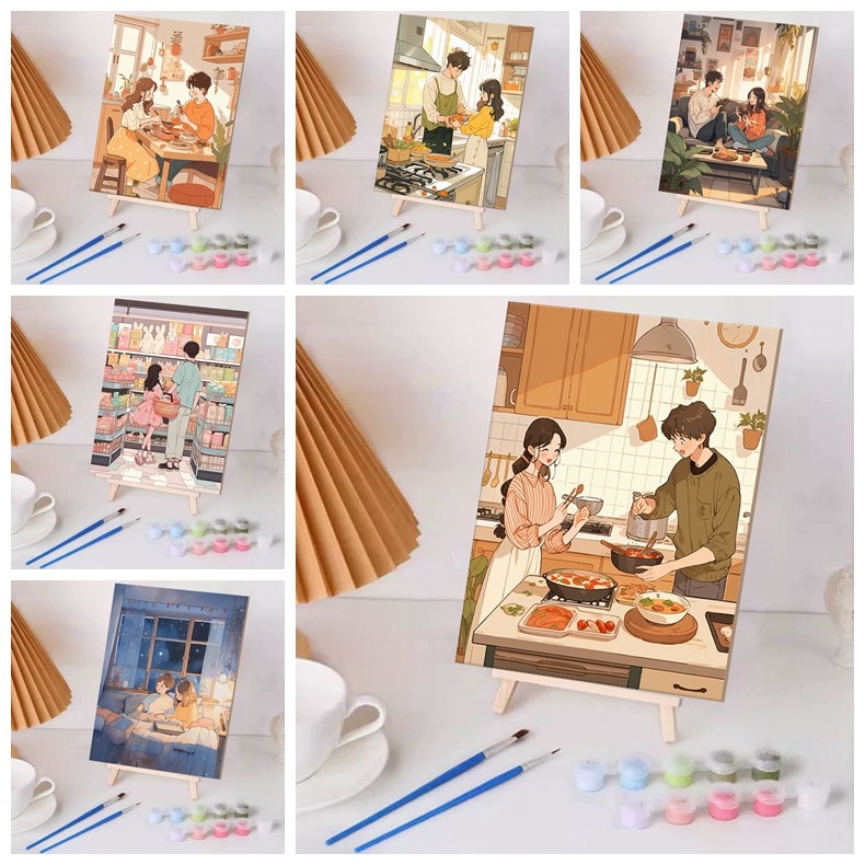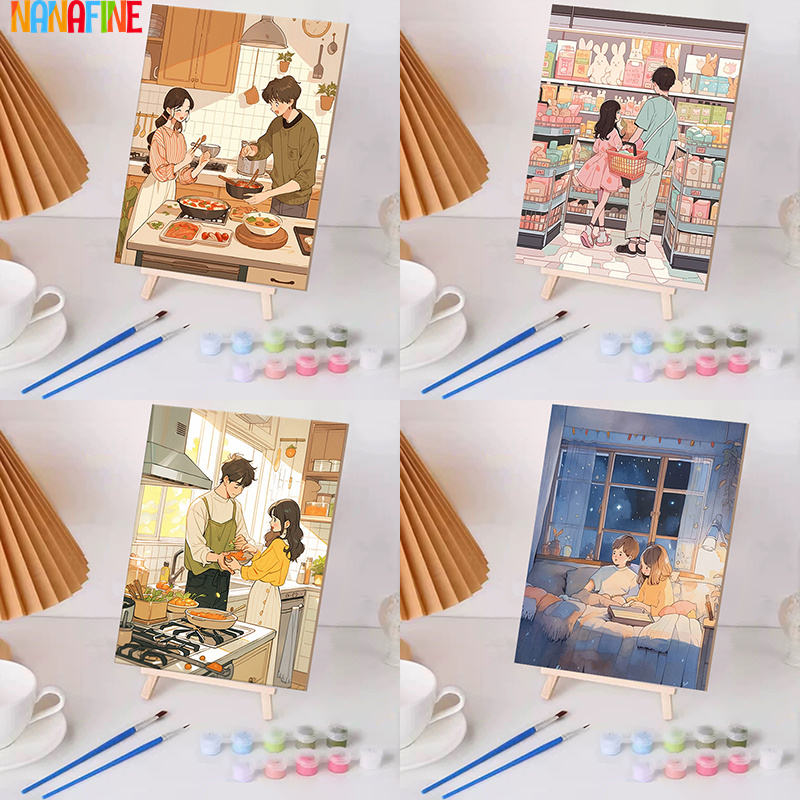 Nanafine【 พร้อมส่ง 】 30X40 การ์ตูนคู่รักรักตัวเลขเติมสีมือวาดสีน้ำมันชุด DIY ล่าสุดภาพวาดสีน้ำมันบริสุทธิ์มือวาดตกแต่งภาพวาดแฟนของขวัญสำหรับเด็กผู้หญิงแบรนด์No BrandSKU5718431654_TH-24382444011เพศที่แนะนำยูนิเซ็กซ์ประเภทของอุปกรณ์งานศิลปะแปรงทาสีช่วงอายุแนะนำเด็กๆ