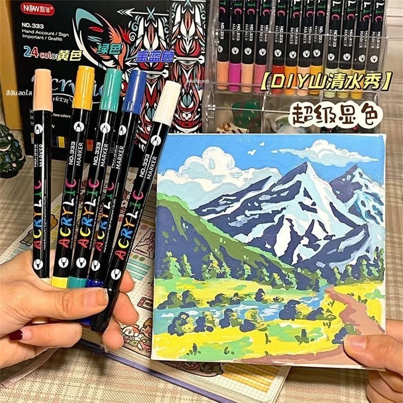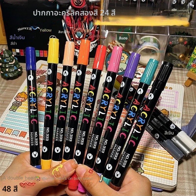 24 สี ปากกา Dual-Tip Fine & แปรง สำหรับหิน ไม้ การประดิษฐ์ตัวอักษร การรับประกันสินค้า ไม่มีการประกัน